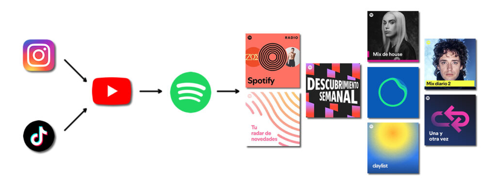 La idea central es llevar al público desde las redes a YouTube y Spotify de manera diferencial, sin desesperarte, pero esto lo explicaré en profundidad más adelante. Trataremos de ejecutar las acciones como si nadie te conociera, para dejar que pase el tiempo necesario para generar cierta expectativa en tus lanzamientos y eso aumente el deseo de que te escuchen.