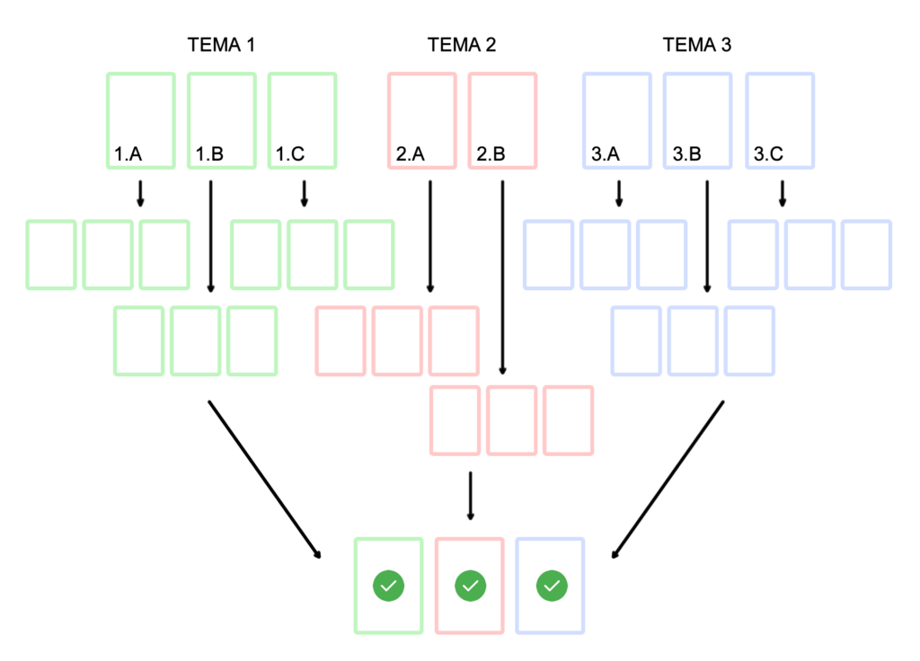 Primero vas a tener que elegir cuáles son tus 3 pilares de contenido principales (temas 1, 2 y 3) que abarcarán el 80%-90% de tus contenidos. El 10%-20% restante lo vas a dejar para estar siempre probando nuevos temas, nuevos ángulos, nuevas piezas.