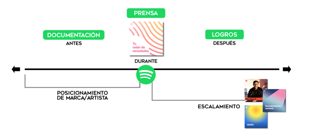 Durante el lanzamiento se busca una promoción más agresiva y directa donde lo mejor es contar con el apalancamiento de la prensa o personas importantes (incluye influencers, ja) hablando sobre tu lanzamiento. Cualquier persona o entidad que tenga autoridad para lo que diga, puede empujar saludablemente tu música y generarte una oleada de fans nuevos, quienes además van a ver tus contenidos de antes del lanzamiento y se van a querer involucrar también.